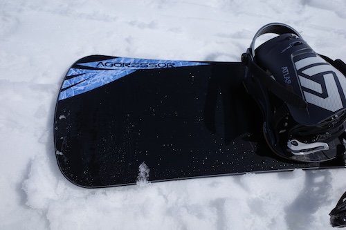 この日のゲレンデは春のシャバ雪でボコボコになっておりましたが、このコンディションでも素晴らしい操作性と安定感でした。従来のアグレッサーには板を倒せば簡単にカービングができるオートマチック感がありましたが、ニューモデルでは乗りやすさや操作性の高さはそのままにマニュアル的な操作感があってより楽しく滑れる板になっていると思いましたね。こりゃ整地でのカービングも試してみたいですな。やはりアミックスのアグレッサーはDNA Tiと並んで最高のフリースタイルカービングボードですのう。