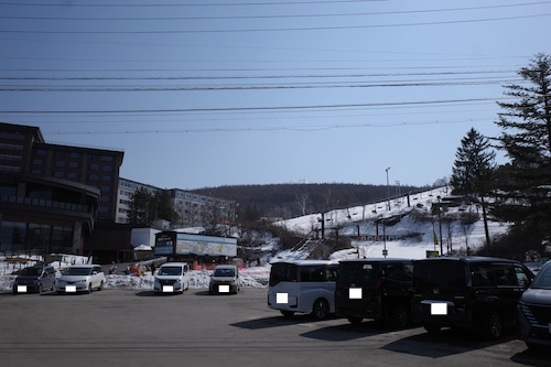 駐車場は空いておりました。通りの向かい側がゲレンデになります。