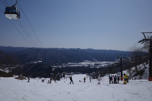 パノラマコースを何本か滑りましたが、こちらもコースはボコボコでRちゃんにはまだ早かったかしら、ということでゴンドラで下山することに。
