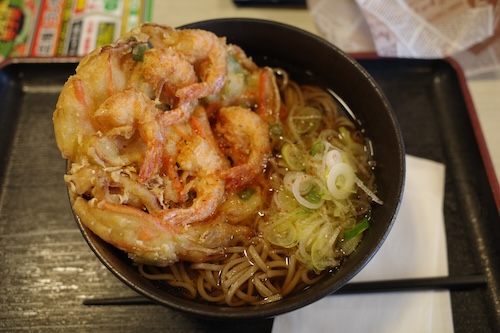 前回も普段のエス氏からはややのんびり出発したのですが、今回はさらに10分ほど遅く自宅を出ました。練馬インターから関越道に乗ったのは5:40頃でしたが、渋滞はありませんでした。7:00頃赤城高原SAに到着し、この日はかぎ揚げそば880円を食べました。前回のラーメンに比べると、フーフーする必要がある程度に熱々だったので嬉しかったですね。