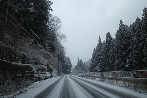 一夜明けて2026/1/2は雪。朝起きて部屋の露天風呂に入ると雪景色になっていました。ここでやった待望の雪だ!滑りに行くぞ!とはならないのがエス氏。下呂温泉て遠いんですよね。この日は自宅に帰ることになっていたので、渋滞に巻き込まれないようにいつもよりがんばって速攻で支度をして一目散に下呂温泉を後にしました。中津川の辺りまで移動すると路面に雪はなくなりましたね。