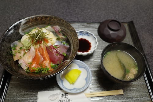 敦賀駅の近くでは海鮮丼をいただきました。トリップの後半では岐阜に移動するので飛騨牛とか食べるんだろうな〜と思っておりましたので、今のうちに海鮮を食べておこうかと。とても美味しくて満足でしたな。