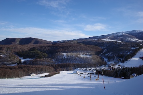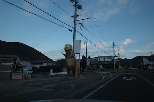 上田菅平インターで高速を降り、恐竜を眺めつつ菅平へ。前回の年末年始トリップでは恐竜博物館に行きましたねえ。