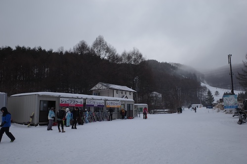 準備をしてゲレンデへ。リフト券は宿(かすみ亭)の割引でかなり安く買えましたぞ。