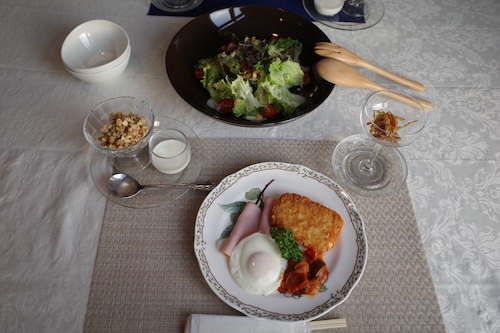 朝食はご飯とパンもありましたが、食べるとお腹いっぱいで動けなくなりそうだったので自粛。それでも十分な量で美味しくいただきましたよ。