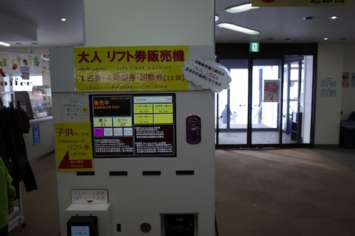 スキーセンターに入りリフト券を購入。回数券を買ったのですが、珍しくICの回数券でした。ローカルゲレンデにありがちな紙の回数券で改札鋏を入れるタイプではなかったですね。