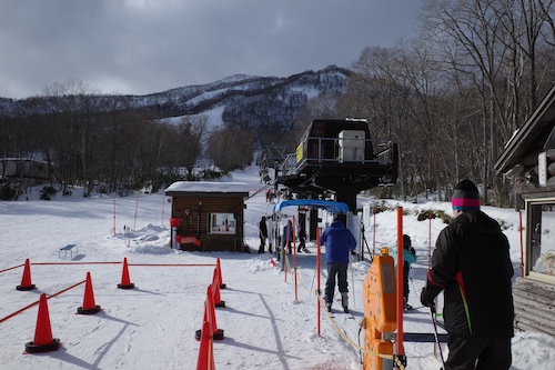 まずはゲレンデの右端にある第三リフトに乗りましたよ。ゲートにリフト券をかざす際に、子供券だと「がんばれ〜」って感じの声が出ていたような。いい仕組みだと思いましたね。