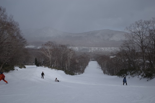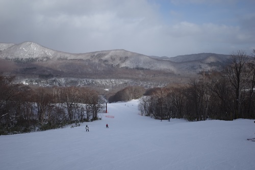 まずは初級のホワイトコースを滑りました。意外にコースが多いんですわ、このゲレンデ。積雪量は少ないものの雪質は良かったので気持ちよく滑れましたよ。