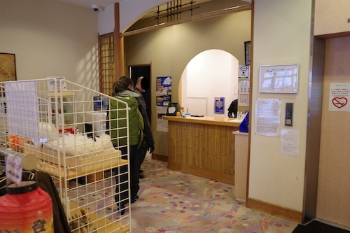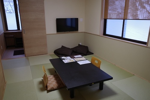 靴を脱いで館内へ。エントランスはそれほど広くはありませんね。フロントでチェックインを済ませます。売店もありましたよ。夕食は18:00開始、朝食は7:00開始もありましたが7:30にしてもらいました。どちらも部屋食となります。