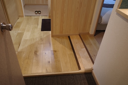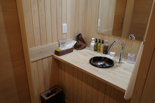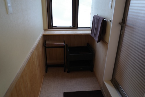 こちらは温泉付きのお部屋となるので、和室の奥に脱衣所があります。