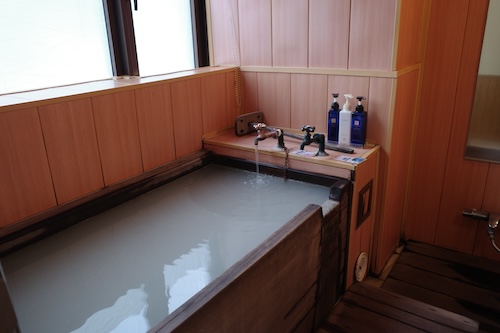 お部屋にこの温泉があるというのは最高過ぎますね。白濁した湯の強い匂いもインパクトがあります。ここに入りまくっていたら匂いが取れなくなってしまったというわけですな。
