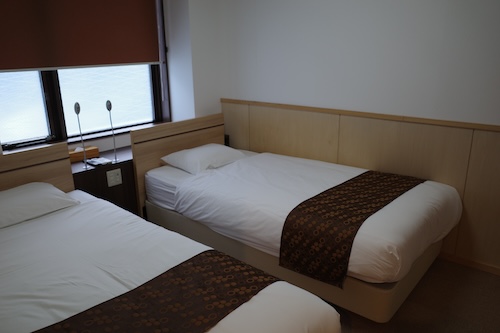 部屋の右側にあるベッドルーム。部屋食なので和室と離れているのは良かったですな。枕元にコンセントがあるのは便利でした。