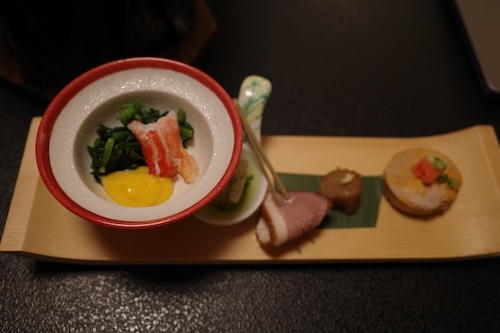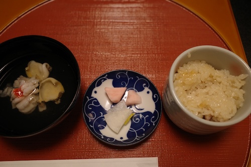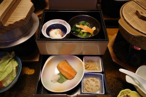 食事は部屋食となるので、夕食開始時間の少し前からスタッフが準備にきてくれますよ。以下お料理の写真です。